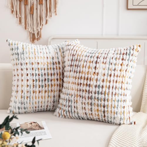 Colorful Chenille Pillow Covers, Set of 2