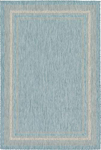 Unique Loom Outdoor Border Collection Area Rug – Soft Border (6' 1" x 9' Rectangle, Aquamarine/ Ivory)