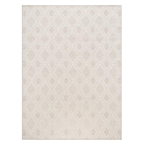 CAMILSON Outdoor Rug 5×7, Modern Outside Rugs for Patios Porches Waterproof Durable Washable Non-Shedding, Easy-to-Clean Indoor Outdoor Area Carpet (5 x 7, Bordered – Beige/White)
