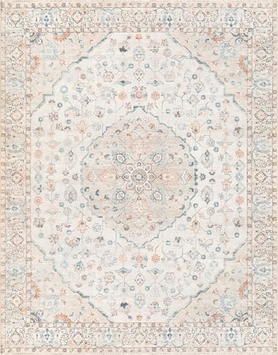 Washable Vintage Style Neutral Rug in Cream, Blush, Blue